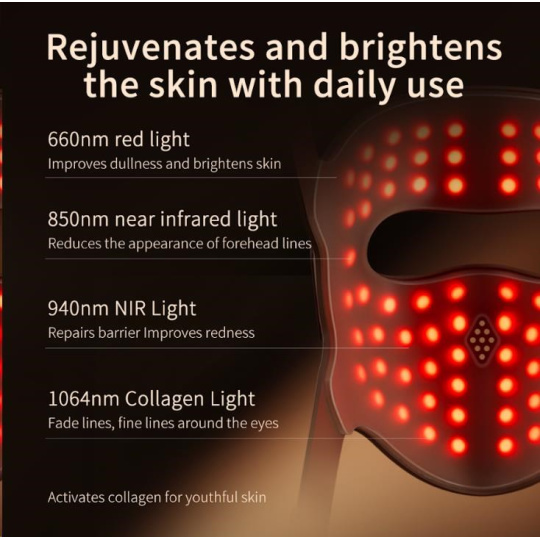 • 660nm (Červené světlo): Stimuluje mikrocirkulaci a proměňuje unavenou pleť v zářivou, cílí na tmavé kruhy.