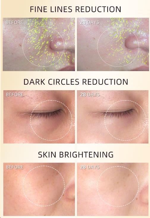 • Klinicky prokázaná redukce vrásek kolem očí o 24,56% a tmavých kruhů o 29,41% za 28 dní.
