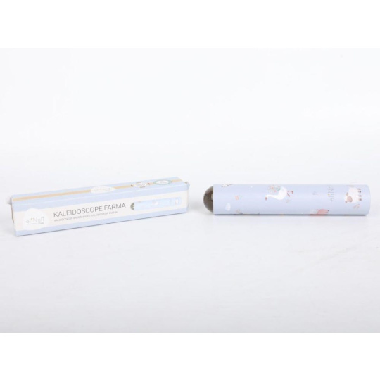 Kaleidoskop v neutrální pastelové barvě, s motivem zvířátek z farmy, v jejich skutečné, reálné podobě, je krásným dárkem pro zvídavé děti. Stačí krasohledem lehce otáčet a uspořádání sklíček a tedy i obrazce se budou měnit a přetvářet. Krasohled, optický přístroj, který pomocí sklíček a zrcadel vytváří kouzelné obrázky, rozvíjí u dětí fantazii a kreativitu..
