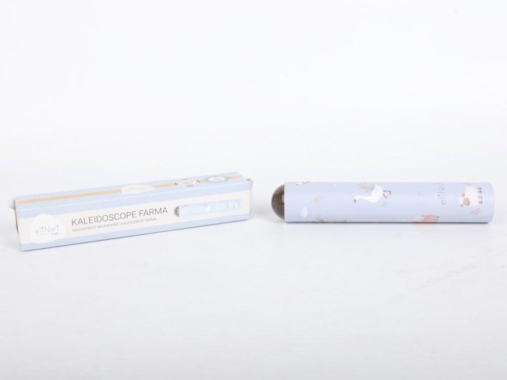 Kaleidoskop v neutrální pastelové barvě, s motivem zvířátek z farmy, v jejich skutečné, reálné podobě, je krásným dárkem pro zvídavé děti. Stačí krasohledem lehce otáčet a uspořádání sklíček a tedy i obrazce se budou měnit a přetvářet. Krasohled, optický přístroj, který pomocí sklíček a zrcadel vytváří kouzelné obrázky, rozvíjí u dětí fantazii a kreativitu..