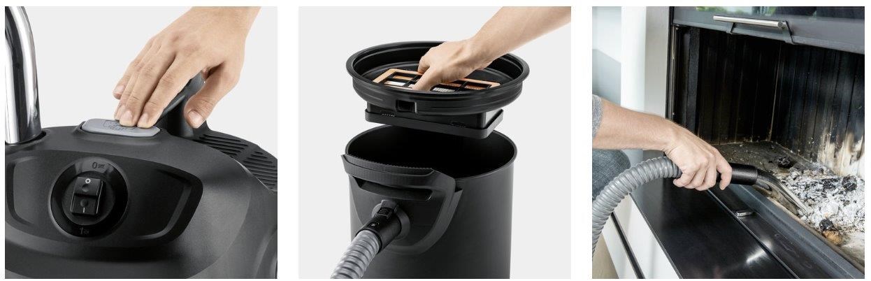 Vysavač na popel s integrovaným čištěním filtru, konstantní sací silou a kovovou nádobou o velikosti 17 l: pro bezpečné odstraňování popela. Silný, vytrvalý, uživatelsky příjemný, mnohostranný a bezpečný: Pro vysavač na vysávání popela a suchých nečistot AD 2 s turbínou 600 Watt je likvidace popela hračkou. Za svou konstantní sací sílu vděčí integrovanému systému na čištění filtru, který stisknutím tlačítka vyfouká zanesený filtr a tím opět zvýší sací výkon. Díky jednodílnému filtračnímu systému s robustním plochým skládaným filtrem a kovovým filtrem na hrubé nečistoty i praktické rukojeti na nádobě lze vysavač pohodlně, rychle a bez jakéhokoli kontaktu s nečistotami vyprázdnit. Kovová nádoba, pružná sací hadice z opleteného kovu a kvalitní nehořlavý materiál nabízejí maximální bezpečnost při vysávání popela. Zkosená ruční trubka umožňuje pracovní komfort a přesvědčí především v rozích a na těžko přístupných místech v komínu. Zbytky popela tak lze bez problémů vysát. Díky kompaktnímu designu vysavač na popel kdykoli uložíte bez nároků na místo a sací hadici pohodlně odložíte. Technické údaje Velikost nádrže / materiál (l) 14 / Kov Jmenovitý průměr - příslušenství (mm) 35 Druh proudu (V/Hz) 220 - 240 / 50 - 60 Příkon (W) 600 Skutečný sací výkon* (Air Watt) 150 Hmotnost bez příslušenství (kg) 4,4 Hmotnost včetně obalu (kg) 6,3 Rozměry (D x Š x V) (mm) 345 x 330 x 440 Vybavení Sací hadice, 1.2 m, 35 mm Plochý skládaný filtr, 1 kusy Pohodlná rukojeť na nádobě Hák na kabel Nastavení pozice.