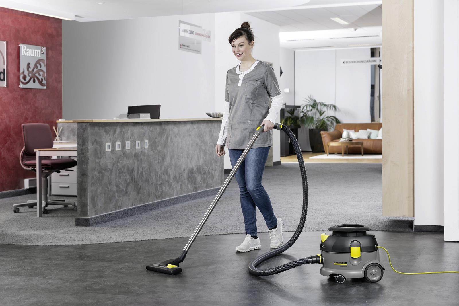 Bytelný vysavač T 12/1 spolehlivě vyčistí odolnou špínu z koberců i tvrdých podlah. Při vysávání nadělá minimum hluku (60 dB), takže se skvěle hodí do hotelů, restaurací i maloobchodu. Přístroj o příkonu 700 W vyvine podtlak až 22 kPa, kterému neodolají ani hrubé nečistoty. Důmyslný 6násobný filtrační systém zajišťuje hygienické odstranění prachu a dlouhou výdrž vysokého sacího výkonu. Omyvatelný filtrační koš umožňuje vysávání se sáčkem i bez něj. Na požádání k vysavači dodáváme také kvalitní HEPA filtr pro ještě lepší výsledky. Vysátý odpad se ukládá ve velké 12l nádobě odolné vůči nárazům. Komfort při úklidu zaručí dlouhý 12m přívodní kabel a ergonomická rukojeť vysavače. Přístroj snadno zapnete i nohou a díky čtveřici pogumovaných koleček lehce přesunete kamkoliv je třeba. A když se vše leskne čistotou, kabel, hubici i sací trubky jednoduše uchytíte k tělu vysavače, takže ušetříte místo na skladování.