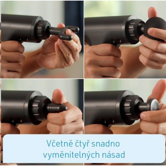 -Efektivní technika perkusí - uvolní vaše hluboké svaly rovnoměrně pulzujícími rázy