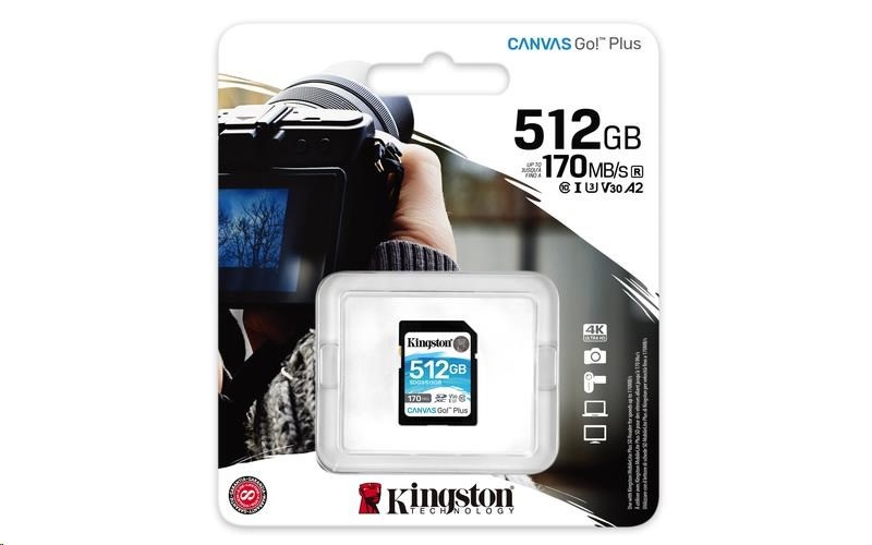 Kingston SDXC karta 512GB Canvas Go! Plus, R:170/W:90MB/s, Class 10, UHS-I, U3, V30
