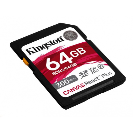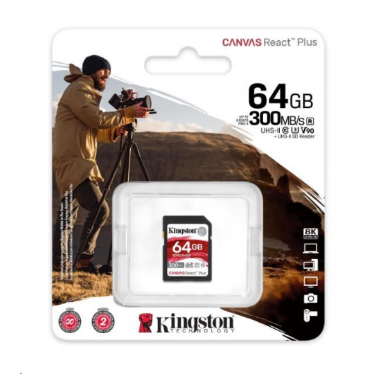 Kingston SDXC karta 64GB Canvas React Plus SDHC UHS-II 300R/260W U3 V90 for Full HD/4K/8K