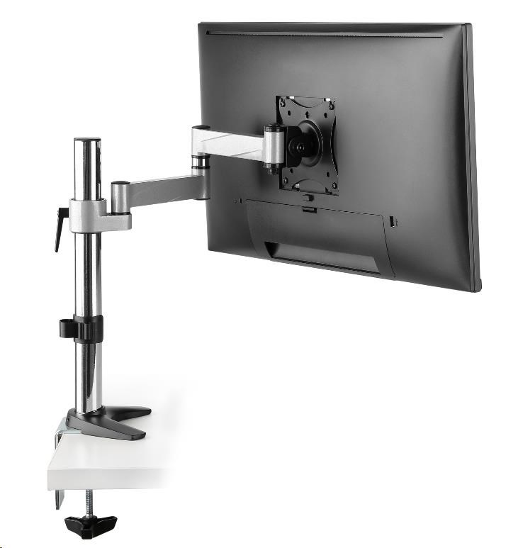 Technické údaje: nosnost 8kg plně nastavelný - 3D polohování monitoru na monitory s úhlopříčkou 13" až 27" podpora VESA 75x75 a 100x100 otáčení do stran +/- 180° náklon +/- 35° rotace obrazovky +/- 180° - funkce PIVOT nastavení vzdálenosti od nosníku 0mm až 396mm nastavení výšky max. 364mm uchycení na stolové desky o průměru 10mm až 85mm dva typy uchycení na stolové desky - svěrák na okraj stolu nebo skrz desku kamkoliv do prostoru krásný vzhled - chromový nosník, ramena ve stříbrném provedení materiál hliník vynikající kvalita, spolehlivost a dlouhá životnost instalační materiál součástí balení záruka 3 roky.