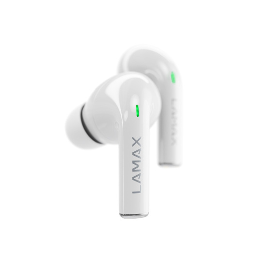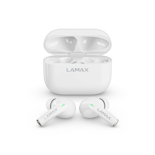 Bezdrátová TWS sluchátka, do uší, 8h výdrž/1 nabití, 40 hodin výdrž celkem, Bluetooth 5.1, dosah až 10 metrů, dotykové ovládání, USB-C, LAMAX BeatBass® technologie, automatické párování, herní režim, malé nabíjecí pouzdro, ukazatel nabíjení, kodeky AAC a SBC, podpora hlasových asistentů, náhradní náušníky..... více