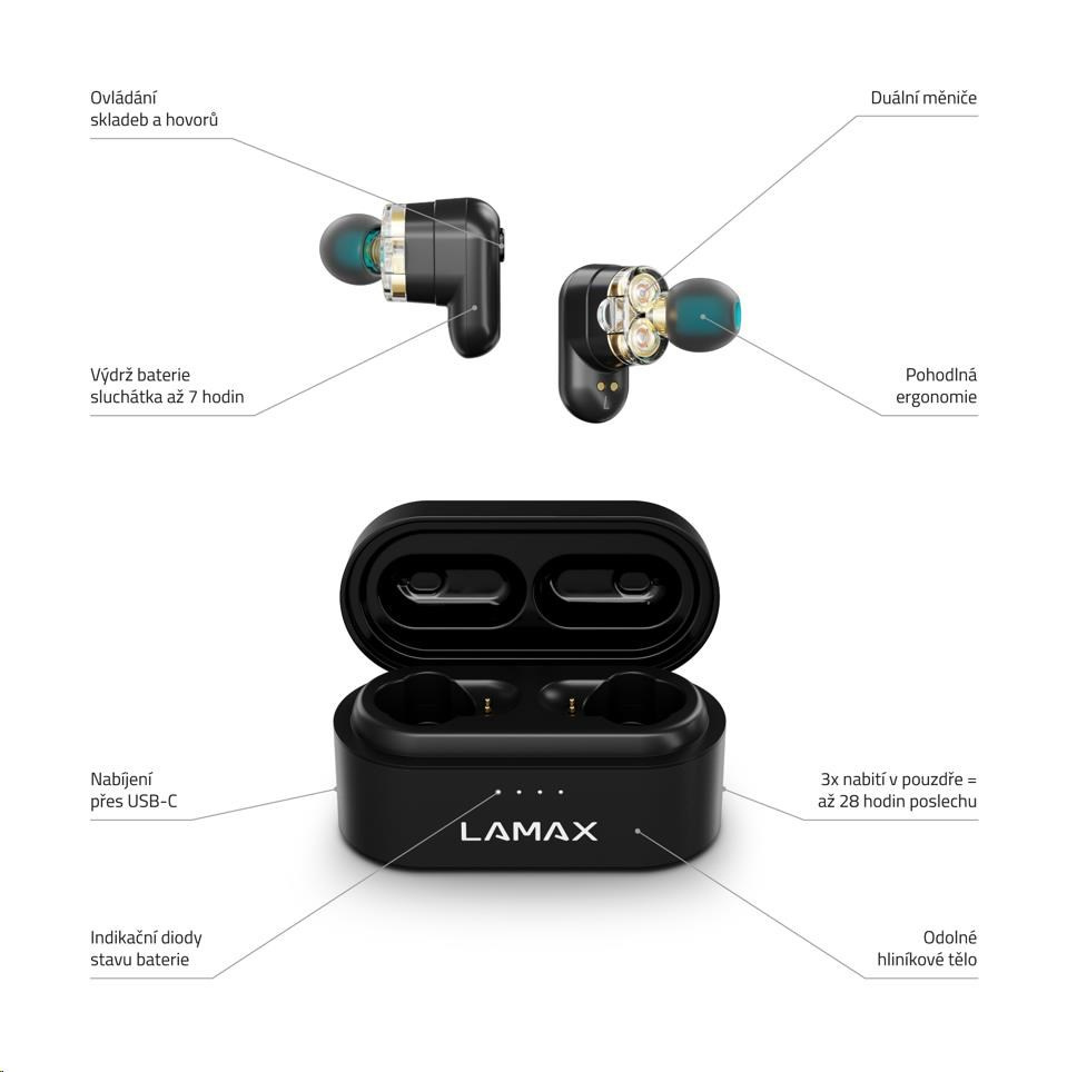 Jestli máš rád opravdu mohutný basy, tak kombo duálních měničů a naší LAMAX BeatBass® technologie, která posiluje spodní frekvence ti zaručí pořádnej basovej zážitek.