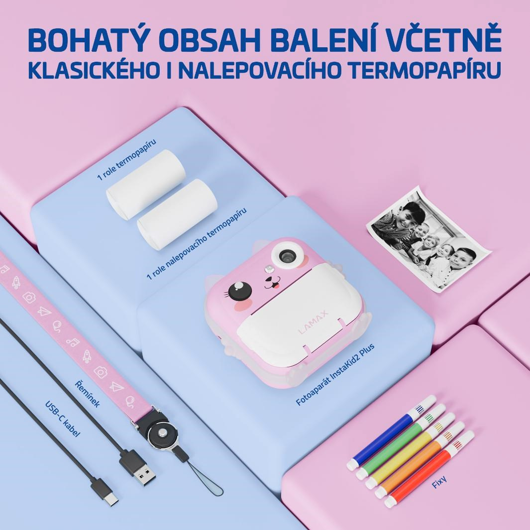 Objevte kouzlo zachycených momentů, které si vaše děti vytisknou během pár vteřin. Dětský fotoaparát LAMAX InstaKid2 Plus s okamžitým tiskem není jen roztomilý na pohled. S českou aplikací, vysokým rozlišením fotek i videa a sadou kreativních nástrojů se stává zábavným parťákem na výlety i do pokojíčku. Děti si s ním nejen vyfotí své zážitky, ale hned si je i vytisknou,vybarví přiloženými fixami a nalepí do deníku nebo kamkoliv budou chtít. Pomocí aplikace pak zvládnou tisknout fotky a poznámky z telefonu, skenovat texty ze sešitů, překlápět snímky do animovaného stylu nebo si s pomocí AI vybarvit černobílé obrázky. A když si od focení chtějí na chvíli odpočinout? O zábavu se postarají i vestavěné hry.LAMAX InstaKid2 Plus fotoaparát podporuje kreativitu, samostatnost i hravé učení a kdo ví, třeba právě tento foťáček odstartuje kariéru vašeho dítěte ve světe fotografií a filmu.