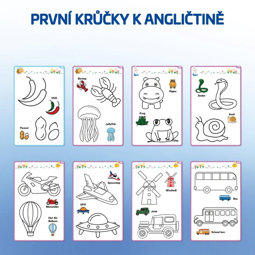 Kreslící tabulka je víc než jen zábava. Díky 40 šablonám si procvičí písmena, čísla, naučí se pojmenovávat zvířata, dopravní prostředky, ovoce i zeleninu. A protože jsou objekty na šablonách popsané i anglicky, dostanou se nenásilně i k prvním slovíčkům v cizím jazyce. Psaní, počítání i kreslení se tak mění v dobrodružství, které podporuje jemnou motoriku, koncentraci a zvídavost.
