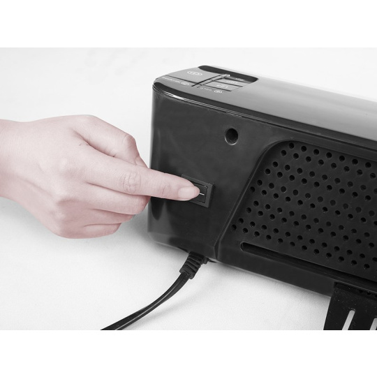 Výkonný kancelářský stroj s jednoduchým nastavením síly laminovací kapsy, díky níž uzpůsobí optimální parametry pro laminování konkrétního dokumentu. 4 válce zajišťují vynikající kvalitu laminace až do tloušťky 250mic. Laminátor se dokáže díky technologii RSH nahřát na provozní teplotu za méně než 1 minutu a disponuje vysokou rychlostí laminace až 480 mm/min. Robustnost laminátoru zajišťuje kompaktní kovová konstrukce. Za zmínku také stojí funkce automatického vypnutí stroje po 30 minutách nečinnosti. Světelná i zvuková signalizace zapnutí a dosažení nastavené teploty. - Zvuková i světelná signalizace - Elegantní design - Grafické ikony pro optimální vkládání laminovacích kapes - Vypnutí stroje po 30 minutách nečinnosti - Možnost nastavení tří druhů síly laminace.