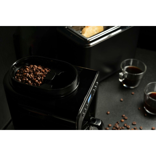 Provoz kávovaru je zcela bezpečný, provedení Cool Touch udržuje povrch přístroje chladný, nemůže tedy dojít k popálení. Pokud byste zapomněli kávovar vypnout, netřeba paniky, disponuje funkcí automatického vypnutí. Ukazatel hladiny vody poskytuje přehled o tom, zda je třeba ji doplnit. Kávovar se pyšní kompaktními rozměry a prémiovým minimalistickým designem s matným černým povrchem. I když není obr a na lince tak zůstane spousta místa, funkcemi si v ničem nezadá s daleko většími kolegy. Díky možnosti mytí v myčce se snadno udržuje a omyvatelný filtr z nerezové oceli šetří peníze i životní prostředí, stačí vám totiž jeden nastálo. Konec neekologických jednorázových.