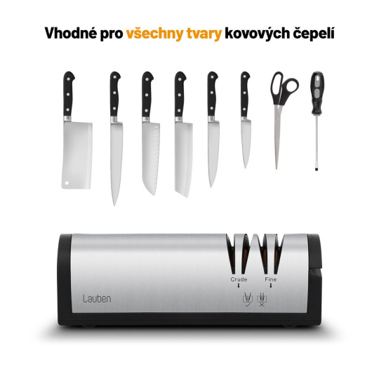 Díky Lauben Knife Sharpener 4700SB nabrousíte většinu nožů a sekáčků v pohodlí domova. Přidali jsme i speciální slot na broušení nůžek, i s těmi se tedy bruska Lauben poradí. Bruska umožňuje dva stupně broušení – hrubé a hladké začištění. Díky vodicím drážkám pro udržení správného sklonu a optimálnímu brusnému úhlu 15° zvládnete dokonale nabrousit každé ostří jako profesionál. Stačí brusku zapojit, spustit a vložit ostří, které chcete nabrousit.