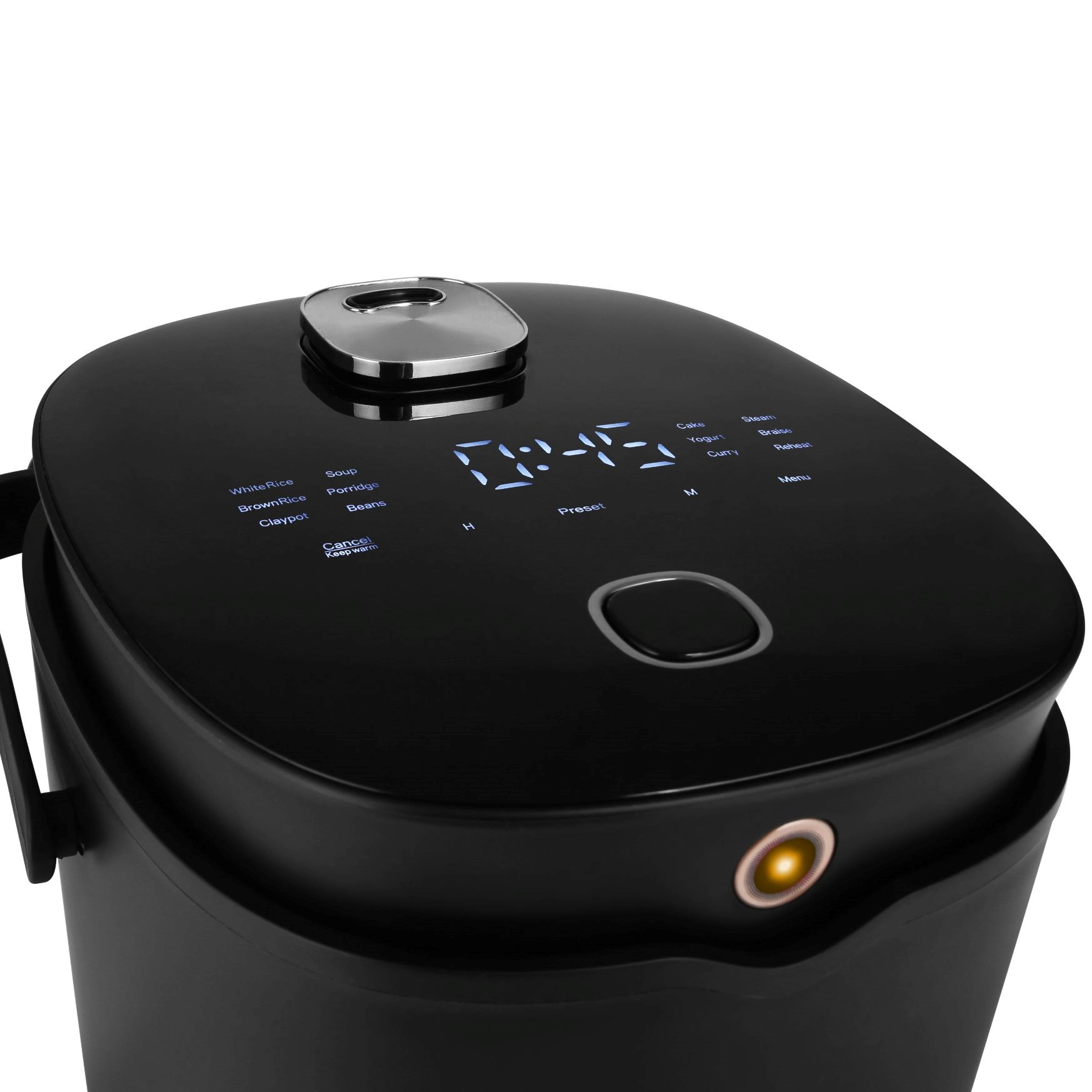 Ovládání multifunkčního rýžovaru zvládne úplně každý pomocí přehledného dotykového displeje, kde stiskem tlačítka aktivujete zvolenou funkci nebo si manuálně nastavíte hodnoty dle potřeby. Manipulaci s rýžovarem usnadňuje praktické madlo. Ve 2l hrnci s nepřilnavým povrchem pohodlně připravíte jídlo pro celou rodinu či sešlost přátel. Stačí jej pak vyjmout a vložit do myčky, žádné složité drhnutí. Součástí balení je rovněž praktická odměrka a lžíce na rýži.