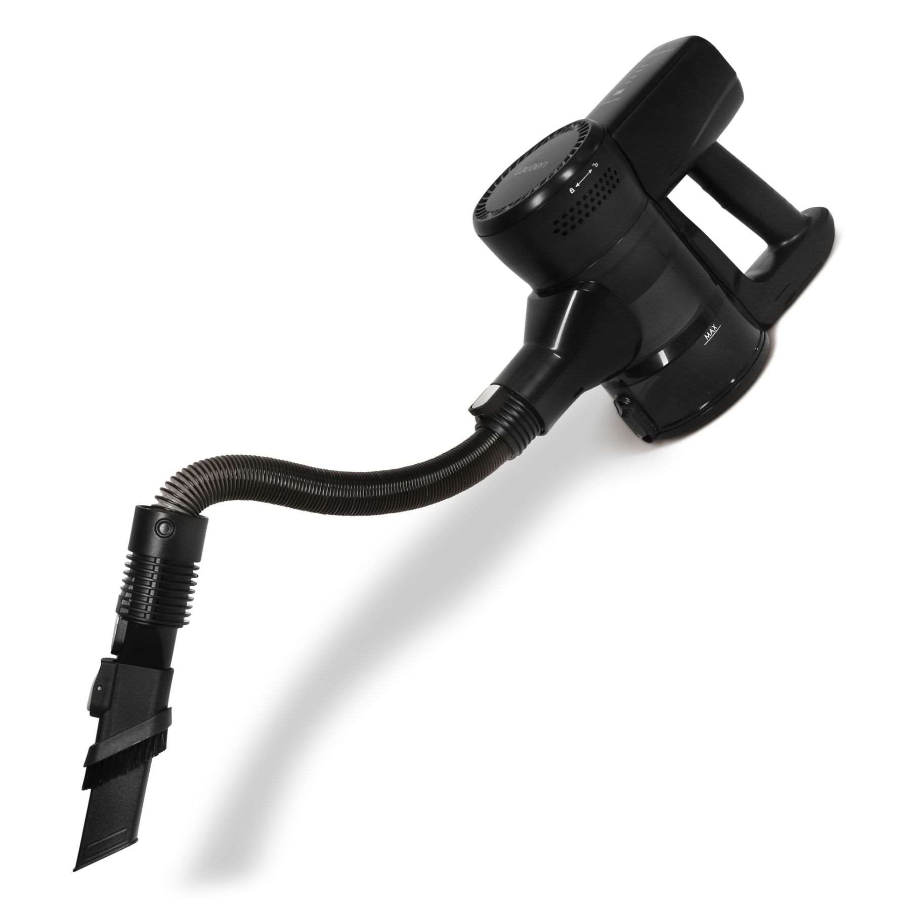 Vysavač je vybaven speciálním zakřiveným kartáčovým nástavce a flexibilní hadicí pro bezproblémový úklid špatně dostupných míst a tyčí s kloubem, která se dostane jednoduše i pod nábytek.