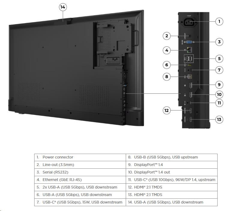 | USB Port | 4x USB-A (USB 5Gbps), 1x USB-C® (USB 5Gbps, PD 15W), 1x USB-B (USB 5Gbps, USB upstream), 1x USB-C (USB 10Gbps, 96W PD3.1, USB upstream) |