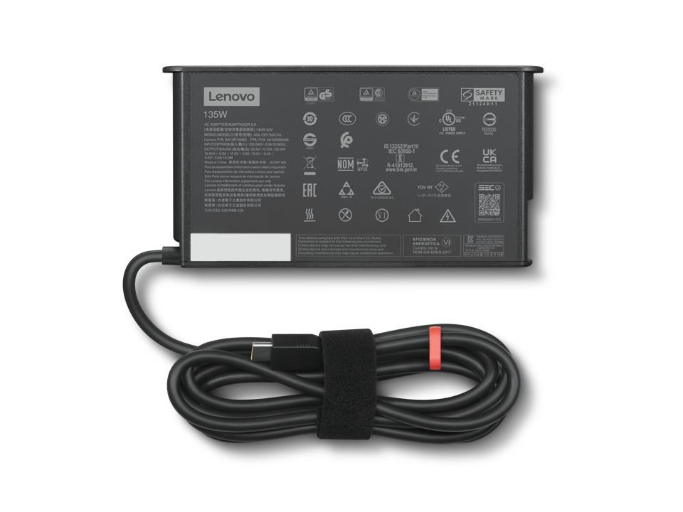 Síťový adaptér Lenovo 135 W (USB typu C) nabízí rychlé a efektivní nabíjení doma, v kanceláři nebo na cestách. Je to ideální náhradní nebo náhradní napájecí adaptér pro vaše zařízení ThinkPad.