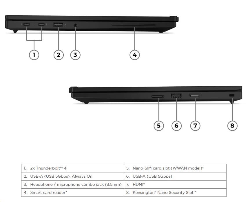 2x USB-C® (Thunderbolt™ 4 / USB4® 40Gbps), with USB PD 3.1 and DisplayPort™ 2.1