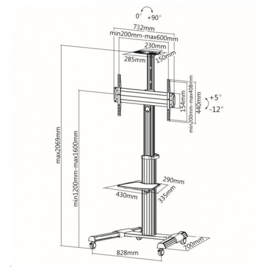 Levný profesionální Tv stojan Fiber Novelty FN7000    I profesionální kvalita může být levná - výškově stavitelný, sklopný stojan na Tv 40-100", PIVOT, mobilní, vedení kabeláže     Profesionální stojan na LCD, LED, 3D, smart, plazmové, dotykové nebo prohnuté televizory s úhlopříčkou 40 až 100 palců. Stojan je plně nastavitelný: výškové polohování, náklon Tv, funkce PIVOT pro možnost otočení Tv z horizontální do vertikální polohy, mobilní, kolečka osazeny brzdou. Bohaté příslušenství: v balení se stojanem naleznete držák na Tv, poličku na příslušenství a poličku na kameru nebo projektor. Konstrukce stojanu je uzpůsobena pro skryté vedení veškeré kabeláže. Velmi pěkný, moderní design který vynikne a zaujme. Stojan má bezpečnou stabilní základnu o rozměrech 828x700mm, která je osazena pojezdovými kolečky s brzdou. Celková nosnost stojanu je 50kg. Konstrukce hliníková, barevné provedení dle vyobrazení stříbrné. Ideální stojan na konference, na výstavy a prezentace, do firemních prostor a kanceláří, výrobních prostorů ale i domácností, ordinací a hotelů.     I profesionální televizní stojan může být levný: Fiber Novelty FN7000, výškové nastavení 120-160cm, náklon Tv, funkce PIVOT, pojezd s brzdou, 2x polička, vedení kabeláže, konstrukce z hliníku, unikátní design, profesionální kvalita     Technické údaje:  nosnost 50kg stojan podporuje VESA standardy 200x200 až 600x400 ideální na Tv a monitory s úhlopříčkou 40-100" nastavitelná výška 1200mm až 1600mm (výška od podlahy po střed televizoru) funkce PIVOT: možnost přetočení obrazovky z horizontální do vertikální polohy možnost náklonu obrazovky +5° až -12° součástí balení polička na příslušenství: rozměry 430x335mmm, nosnost 5kg součástí balení polička na kameru nebo projektor: rozměry 285x150mm, nosnost 5kg obě police jsou výškově nastavitelné a odnímatelné konstrukce přizpůsobena pro možnost skrytého vedení kabeláže stabilní a bezpečná podstava s rozměry 828x700mm pojezdová kolečka s brzdou pro zaaretování konstrukce z hliníku velmi pěkný moderní design, který zaujme profesionální kvalita barevné provedení stříbrné záruka 3 roky.