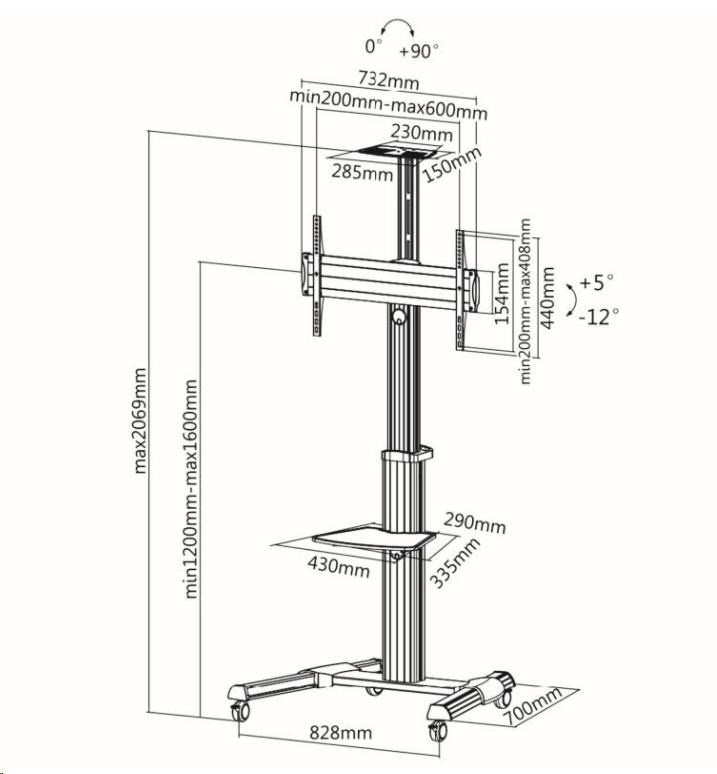 Levný profesionální Tv stojan Fiber Novelty FN7000 I profesionální kvalita může být levná - výškově stavitelný, sklopný stojan na Tv 40-100", PIVOT, mobilní, vedení kabeláže Profesionální stojan na LCD, LED, 3D, smart, plazmové, dotykové nebo prohnuté televizory s úhlopříčkou 40 až 100 palců. Stojan je plně nastavitelný: výškové polohování, náklon Tv, funkce PIVOT pro možnost otočení Tv z horizontální do vertikální polohy, mobilní, kolečka osazeny brzdou. Bohaté příslušenství: v balení se stojanem naleznete držák na Tv, poličku na příslušenství a poličku na kameru nebo projektor. Konstrukce stojanu je uzpůsobena pro skryté vedení veškeré kabeláže. Velmi pěkný, moderní design který vynikne a zaujme. Stojan má bezpečnou stabilní základnu o rozměrech 828x700mm, která je osazena pojezdovými kolečky s brzdou. Celková nosnost stojanu je 50kg. Konstrukce hliníková, barevné provedení dle vyobrazení stříbrné. Ideální stojan na konference, na výstavy a prezentace, do firemních prostor a kanceláří, výrobních prostorů ale i domácností, ordinací a hotelů. I profesionální televizní stojan může být levný: Fiber Novelty FN7000, výškové nastavení 120-160cm, náklon Tv, funkce PIVOT, pojezd s brzdou, 2x polička, vedení kabeláže, konstrukce z hliníku, unikátní design, profesionální kvalita Technické údaje: nosnost 50kg stojan podporuje VESA standardy 200x200 až 600x400 ideální na Tv a monitory s úhlopříčkou 40-100" nastavitelná výška 1200mm až 1600mm (výška od podlahy po střed televizoru) funkce PIVOT: možnost přetočení obrazovky z horizontální do vertikální polohy možnost náklonu obrazovky +5° až -12° součástí balení polička na příslušenství: rozměry 430x335mmm, nosnost 5kg součástí balení polička na kameru nebo projektor: rozměry 285x150mm, nosnost 5kg obě police jsou výškově nastavitelné a odnímatelné konstrukce přizpůsobena pro možnost skrytého vedení kabeláže stabilní a bezpečná podstava s rozměry 828x700mm pojezdová kolečka s brzdou pro zaaretování konstrukce z hliníku velmi pěkný moderní design, který zaujme profesionální kvalita barevné provedení stříbrné záruka 3 roky.