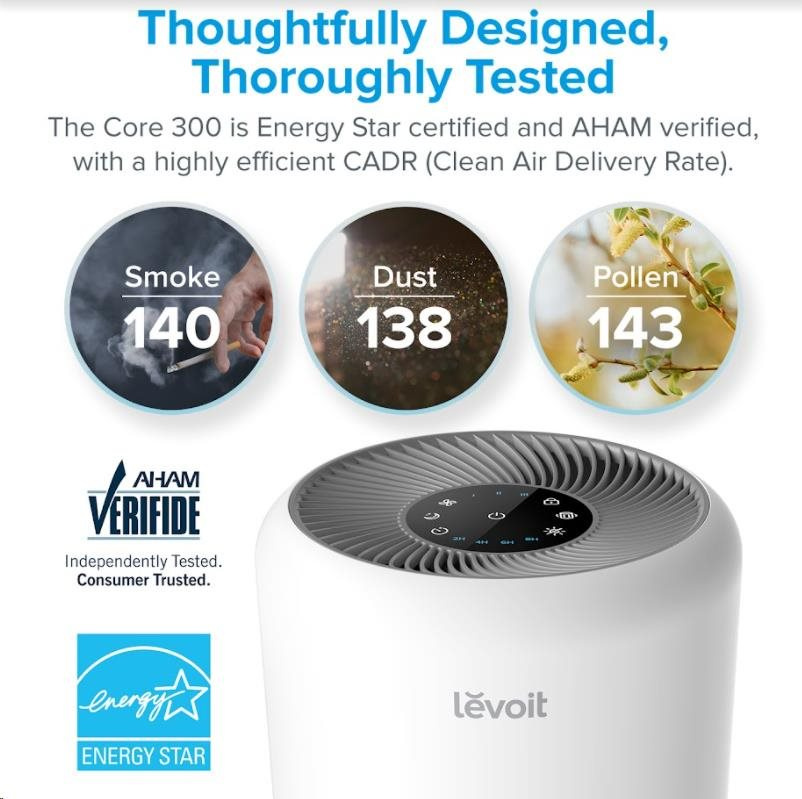 Chcete mít doma čistý vzduch jako prevenci před onemocněním horních cest dýchacích nebo jste alergik či astmatik? Čistička vzduchu Levoit CORE 300-RAC díky vysoce kvalitní 3 vrstvé filtraci s filtrem HEPA H13 a maximální cirkulaci vzduchu patentované technologie VortexairTM odstraní až 99,97% škodlivých látek a nečistot, které byste jinak dýchali. Ovládání čističky vzduchu je vskutku jednoduché. V noci oceníte noční režim podpořen technologií QuietKEAPTM, díky které provoz produkuje hluk pouze 24B a váš spánek tak nebude rušen.