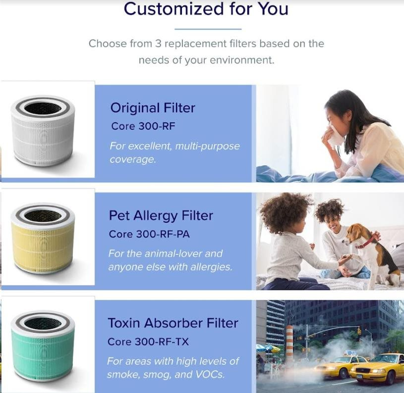 Poslední, vysoce efektivní karbonový filtr pak už jen odfiltruje kouř, pachy, výpary a jiné nejmenší částice. Celkově čistička Levoit CORE 300 zachytí až 99,97% všech nečistot, a to až do miniaturní velikosti 0,3 mikronů. Vám zůstane jenom čerstvý a čistý vzduch.