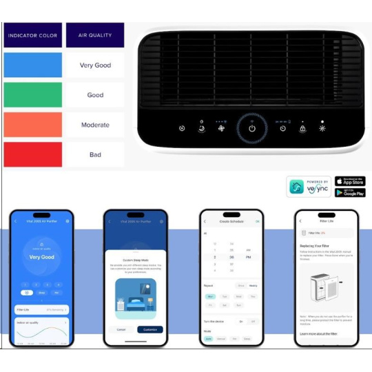Chcete mít doma čistý vzduch jako prevenci před onemocněním horních cest dýchacích nebo jste alergik či astmatik? Chytrá čistička Levoit Vital 100S díky vysoce kvalitní 3 vrstvé filtraci s filtrem HEPA H13 a omývatelným předfiltrem odstraní až 99,97% škodlivých látek a nečistot, které by jste jinak dýchali. Čistička Levoit Vital 100S je certifikována pro alergiky a disponuje výkonem 243 m3/h CAD při 32W. Díky energeticky nenáročnému provozu získala ocenění Energy Star. Ovládaní čističky vzduchu je vskutku jednoduché přímo na displeji nebo se nabízí ovládání přes aplikaci na chytrých zařízeních Android nebo Apple (iOS). Levoit Vital 100S je vybaven senzorem snímaní kvality vzduchu na něhož základě umí sám chytře upravovat výkon čištění.
