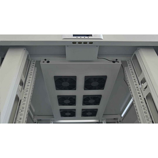 LEXI-Net 19" stojanový rozvaděč 45U 800x800 rozebiratelný, ventilace, termostat, kolečka, 600kg, sklo, rozložený, šedý