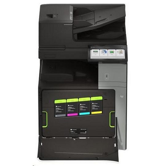.Part Number 20L8250 Print Technology Color Laser Function Color Copying Color Faxing Color Printing Color Scanning Trusted Platform Module (TPM) The Trusted Platform Module (TPM) is not available in some countries. Workgroup Size Large Workgroup Touch Screen Display Yes Display Lexmark e-Task 10-inch (25 cm) class color touch screen Print Speed (Letter, Black) Up to 45 ppm4 Print Speed (Letter, Color) Up to 45 ppm4 Print Speed (Letter, Black) Duplex Up to 45 spm4 Print Speed (Letter, Color) Duplex Up to 45 spm4 Time to First Page (Black) As fast as 7.1 seconds Time to First Page (Color) As fast as 8.2 seconds Duplex (2-sided) Printing Integrated Duplex Print Resolution, Black 1200 x 1200 dpi 4800 Color Quality Print Resolution, Color 1200 x 1200 dpi 4800 Color Quality Copy Speed (Letter, Black) Up to 45 cpm4 Copy Speed (Letter, Color) Up to 45 cpm4 Copy Speed (Letter, Black) Duplex Up to 45 spm4 Copy Speed (Letter, Color) Duplex Up to 45 spm4 Time to First Copy (Black) As fast as 8.5 seconds Time to First Copy (Color) As fast as 9.5 seconds Reduce / Enlarge Range 25 - 400 % A4/Ltr Simplex Scan Speed (Black) Up to 120/120 sides per minute A4/Ltr Simplex Scan Speed (Color) Up to 120/120 sides per minute A4/Ltr Duplex Scan Speed (Black) Up to 240/240 sides per minute A4/Ltr Duplex Scan Speed (Color) Up to 240/240 sides per minute Scan Area, Maximum 11.69 x 17.0 inches ADF Scan DADF (single pass Duplex) Scanner Type Flatbed scanner with automatic document feeder Scan Resolution, Enhanced 600 x 600 dpi Scan Resolution, Optical 300 x 300 dpi Optical Scanning Resolution 300 X 300 dpi Scan File Formats (Send as) JPEG, JPG PDF Secure PDF TIFF Archival PDF (A-1a, A-1b) Searchable PDF TXT RTF DOCX Scan Destinations e-mail FTP USB Flash drive USB or Network connected computer Processor Speed Quad Core, 1.2 GHz Memory, Standard 4 GB Memory, Maximum 4 GB Hard Disk Intelligent Storage Drive included; Magnetic Hard Disk available Apple Operating Systems Supported Support is provided through AirPrint and AirScan only Citrix MetaFrame Microsoft Windows Server 2012 R2 Datacenter Edition running Citrix XenApp 7.5, 6, 7, 8, 9, 11, 12, 13, 14, 15, 16 Microsoft Windows Server 2012 Datacenter Edition running Citrix XenApp 7.5, 6, 7, 8, 9, 11, 12, 13, 14, 15, 16 Microsoft Windows Server 2012 Foundation running Citrix XenApp 6.0, 6.5 Microsoft Windows Server 2012 Essentials running Citrix XenApp 6.0, 6.5 Microsoft Windows Server 2012 Standard running Citrix XenApp 6.0, 6.5 Linux Operating Systems Supported Ubuntu 20.04 Debian 10 SUSE Linux Enterprise Server 12 SP5 OpenSUSE 15.2 Debian 11 Ubuntu 22.04 Fedora 36 Fedora 37 SUSE Linux Enterprise Server 15 SP4 OpenSUSE 15.4 Red Hat Linux 8.7 Red Hat Linux 9.1 Microsoft Windows Operating Systems Supported Windows Vista Windows Vista x64 Windows Server 2008 Windows Server 2008 x64 Windows Server 2008 running Terminal Services Windows Server 2008 x64 running Terminal Services Windows 7 Windows 7 x64 Windows Server 2008 R2 Windows Server 2008 R2 running Terminal Services Windows 8 Windows 8 x64 Windows Server 2012 Windows 8.1 Windows Server 2012 R2 Windows 10 Windows Server 2016 Windows Server 2019 Windows Server 2022 Windows 11 Novell Operating Systems Supported Novell NetWare 6.5 Open Enterprise Server Novell Open Enterprise Server 2 (SP3) on SuSE Linux Enterprise Server 10 SP4 (x86 and x64) 3 Novell Open Enterprise Server 11 (SP3) on SuSE Linux Enterprise Server 11 SP4 (x86 and x64) Novell Open Enterprise Server 11 (SP3) on SuSE Linux Enterprise Server 12 SP1 (x86 and x64) Novell Open Enterprise Server 15 (SP1) on SuSE Linux Enterprise Server 11 SP4 (x86 and x64) Other Operating Systems Supported Virtually any platform supporting TCP/IP Included Paper Handling 550-Sheet Tray 150-Sheet Multipurpose Feeder 500-Sheet Output Bin Optional Paper Handling 550-Sheet Tray Offset Stacker 500-Sheet Staple Offset Finisher 2 x 550-Sheet Tray 2000-Sheet Tandem Tray Cabinet 1,500-Sheet High-Capacity Tray Paper Transport Unit Folding Paper Transport Unit 1,250-Sheet Staple Hole Punch Finisher 2,250-Sheet Booklet Staple Hole Punch Finisher Paper Input Capacity, Standard Up to 700 pages 20 lb or 75 gsm bond Paper Input Capacity, Maximum Up to 4750 pages 20 lb or 75 gsm bond Paper Output Capacity, Standard Up to 500 pages 20 lb or 75 gsm bond Paper Output Capacity, Maximum Up to 2650 pages 20 lb or 75 gsm bond Paper Weight Range Supported - Standard Tray (lb.) 16 - 80 lb. Paper Weight Range Supported - Multipurpose Feeder (lb.) 16 - 80 lb. A3 / 11 x 17 Yes ADF 300-Sheet Automatic Document Feeder ADF Paper Input Capacity Up to 300 pages 20 lb or 75 gsm bond ADF Paper Output Capacity Up to 300 pages 20 lb or 75 gsm bond Finishing Option Yes Finishing Functions Offset stacking Stapling Hole punching Number of Paper Inputs, Standard 2 Number of Paper Inputs, Maximum 6 Media Types Supported Card Stock Envelopes Glossy Paper Labels Plain Paper Vinyl Labels Refer to the Paper & Specialty Media Guide Media Sizes Supported 10 Envelope 7 3/4 Envelope 9 Envelope A3 A4 A5 B5 Envelope C4 Envelope C5 Envelope DL Envelope Hagaki Card Executive Folio JIS-B4 JIS-B5 Ledger Legal Letter Statement Oficio A6 SRA3 Standard Ports USB 2.0 Specification Hi-Speed Certified (Type B) Gigabit Ethernet (10/100/1000) Front USB 2.0 Specification Hi-Speed Certified port (Type A) 802.11a/b/g/n/ac + Apple iBeacon Optional Local Ports Internal RS-232C serial Internal 1284-B Bidirectional Parallel Optional Network Ports MarkNet N8230 Fiber Ethernet Print Server Direct USB Yes Ethernet Network Yes Wireless Yes Wireless Network WPA2™ - Personal WPA™ and WPA2™ - Personal 802.1x Authentication: MD5, MSCHAPv2, LEAP, PEAP, TLS, TTLS Network Protocol Support TCP UDP IPSEC w/ IPv4 IPSEC w/ IPv6 ICMP IGMP IPv4 IPv6 Network Printing Methods Direct IP (Port 9100) Enhanced IP (Port 9400) FTP IPP 1.0, 1.1, 2.0 (Internet Printing Protocol) Microsoft Web Services WSD Pull Printing Thin Print LPR Network Management Protocols WINS AP