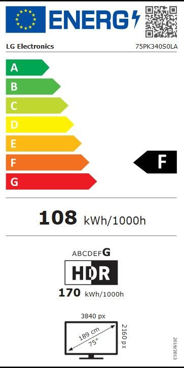 Úhlopříčka obrazovky ("):75"; Technologie TV:LED; Rozlišení:4K UHD 3840x2160; Rozhraní:Jack 3,5 mm výstup, LAN (RJ-45), HDMI, USB 2.0, RS-232; Formát obrazovky:16:9; Svítivost (nit):300; Doba provozu:16/7; Energetická třída:F.
