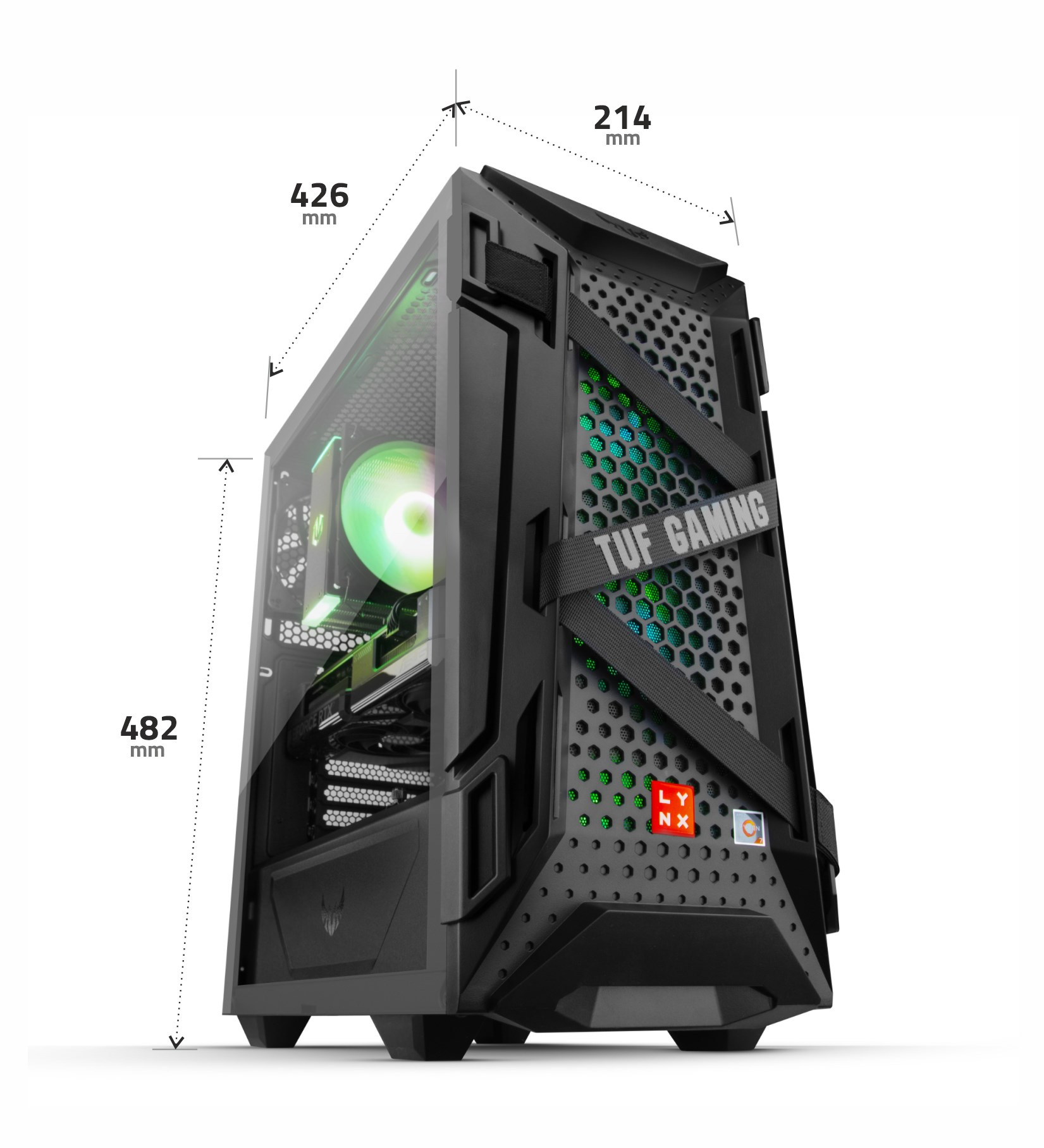 - Skříň: ASUS TUF GAMING GT301 – Moderní a dobře větraná skříň s dostatkem prostoru pro komponenty i budoucí upgrady.