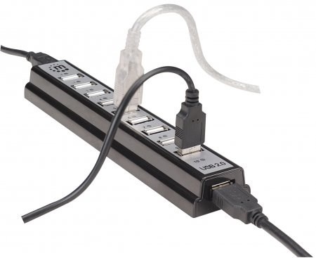 The Manhattan Hi-Speed USB Desktop Hub easily expands USB access for desktop and notebook computers to connect more peripherals and mobile devices. With 10 extra high-speed, backward-compatible ports, the Manhattan Hi-Speed USB Desktop Hub can manage almost any digital enthusiast’s growing collection of USB-enabled devices. It´s ideal for recharging MP3 players, cellphones, digital cameras and other mobile accessories and connecting keyboards, mice, Web cameras, flash drives, card readers and more. The compact and durable plastic case features the power and hub-to-PC ports on the side panel to help better organize connections and minimize cable clutter. Plug and Play with hot-swap capabilities, Windows7/8 and Mac compatibility, and data transfer speeds up to 480 Mbps help the Manhattan Hi-Speed USB Desktop Hub consolidate numerous, less-capable hubs into a single USB solution.