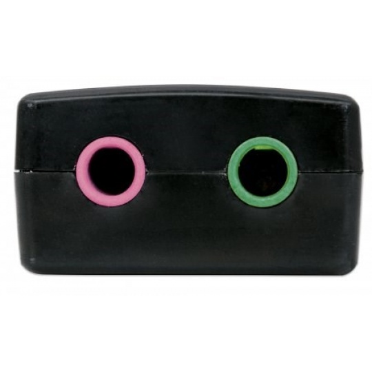 Ideal for desktop, notebook and netbook computers, the Manhattan Hi-Speed USB 3D 7.1 Sound Adapter instantly creates microphone-in and audio-out ports through any USB port. Easily connect headsets, microphones and speakers equipped with 3.5 mm cables that are too short to reach ports in awkward or inconvenient locations comfortably. With plug-and-play and hot-swap capabilities, it easily replaces inoperative sound cards, bypasses damaged audio ports and improves access without special drivers or software. A built-in Class-B power amplifier utilizes USB bus power, eliminating the need for external energy supplies or additional cables. Support for 3D audio and virtual 7.1 surround sound and built-in sound effects with a 10-band equalizer deliver rich, high-quality experiences with familiar USB convenience and functionality.