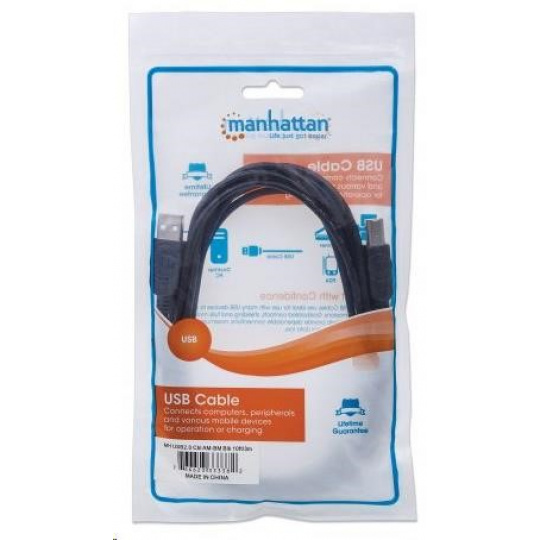 MANHATTAN Hi-Speed USB Device Cable, Type-A Male / Type-B Male, 5m (3 ft.), Black