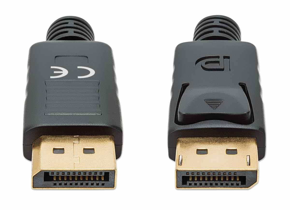 - DisplayPort 20-pin male to DisplayPort 20-pin male latching connections
