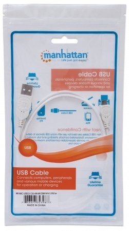 Manhattan Hi-Speed USB 2.0 Device Cables easily connect USB peripherals and accessories with desktop and notebook computers. Ideal for use with many USB external enclosures, hubs and other hot-swap, plug-and-play devices, Manhattan Hi-Speed USB 2.0 Device Cables support data transfer rates up to 480 Mbps on Windows and Mac systems for fast, reliable transmissions. Nickel-plated contacts, shielding and fully molded boots with strain relief help provide dependable connections, maximum conductivity and minimal data loss with reduced EMI interference.