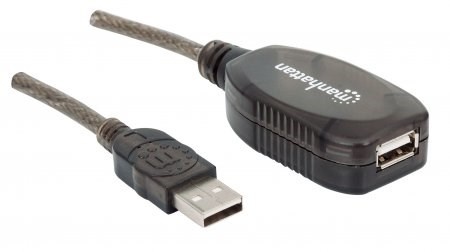 Use the Manhattan Hi-Speed USB Active Extension Cable to connect a computer USB port to a USB device almost anywhere in the room. Up to three daisy-chainable cable extensions provides a convenient, 30 m (99 ft.) connection. Manhattan Hi-Speed USB Active Extension Cable with built-in repeater is fully compliant with USB 1.1 and Hi-Speed USB specifications to help devices operate at maximum performance levels. Plug- and-play capability, Windows/Mac versatility and no external power or driver requirements help provide greater flexibility in computer and peripheral placement and office layout.