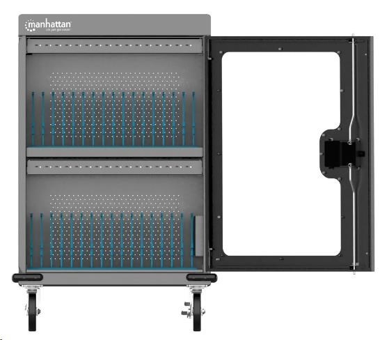 MANHATTAN nabíjecí vozík - 32 portů USB-C, 576 W, přepěťová ochrana, tichá ventilace, kovové pouzdro, černá