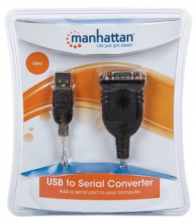 Most modern computers and laptops don't have RS232 (DB9) ports, making the use of legacy peripherals and high-tech devices which connect with COM ports almost impossible. The Manhattan USB to Serial Converter — with its serial RS232 (DB9) port and Prolific PL-2303RA chipset — easily expands a single USB port to connect and support serial modems, barcode scanners, digital cameras, card readers, Ham/Amateur Radios, GPS, CNC machines, telescopes, embroidery machines, fuel injection controllers, PDUs, network switches and other devices.
