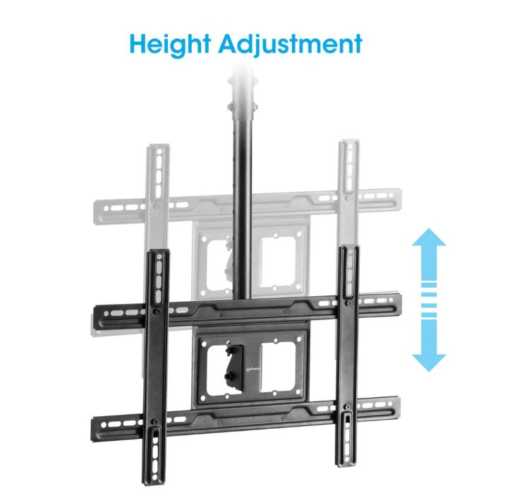 Vylepšete úhel pohledu, když je místo na stěně a podlaze omezené nebo není možné instalovat televizor nízko nad podlahou. Tento stropní držák na televizor Manhattan pojme LCD, LED nebo plazmový displej o úhlopříčce 37" až 80" a hmotnosti až 50 kg. Jeho práškově lakovaná, odolná ocelová konstrukce zajišťuje bezpečnou a spolehlivou instalaci nad hlavou.