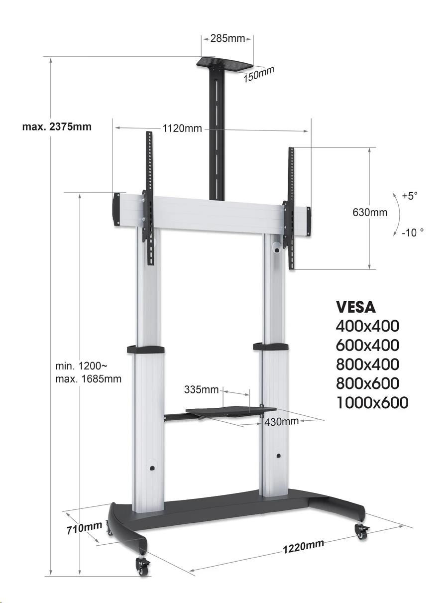 - Height-adjustable from 1200 to 1685 mm (47.2 to 66.3 in.)