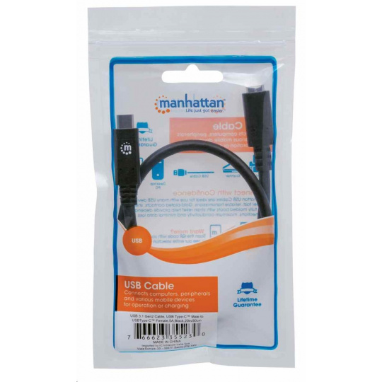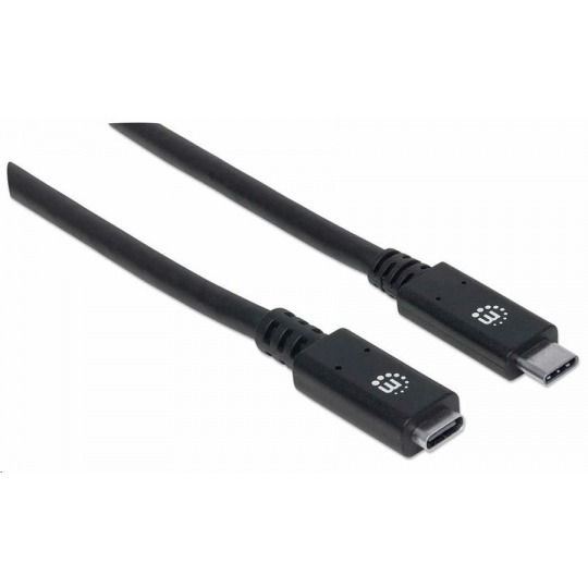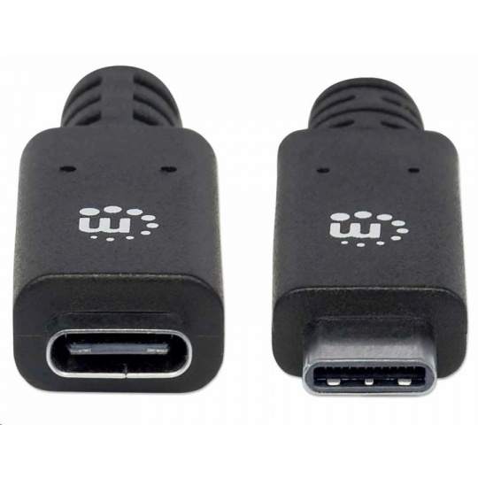 Manhattan USB-C kabel, USB 3.1 Gen 2, USB-C Male na USB-C Female, 10 Gbps, 5 A, 50cm, černá