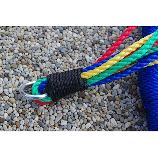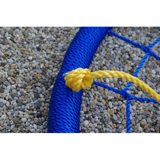Závěsná houpačka ve tvaru kruhu je svým průměrem 100 cm a nosností až 150 kg ideální nejen pro děti, ale i dospělé. Velká sedací plocha houpačky nabízí volnost při houpání i dostatečný prostor pro lenošení. Houpačka je zavěšena na 4 délkově nastavitelných lanech, která jsou zakončena kovovými kroužky pro zavěšení na nosnou konstrukci.