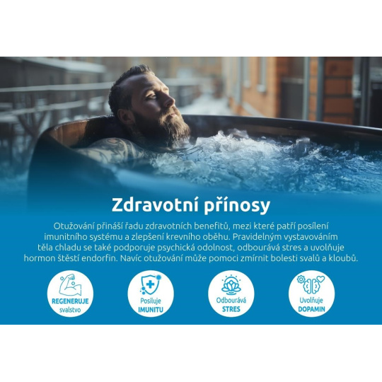 Pravidelné otužování v kádích přináší řadu zdravotních výhod. Posiluje imunitní systém, podporuje zdravý krevní oběh a zlepšuje psychickou odolnost. Odbourává stres, uvolňuje endorfiny a pomáhá zmírňovat bolesti svalů a kloubů. Ochlazovací káď tak není jen prostředkem pro relaxaci, ale také cestou ke zlepšení fyzické i duševní pohody.