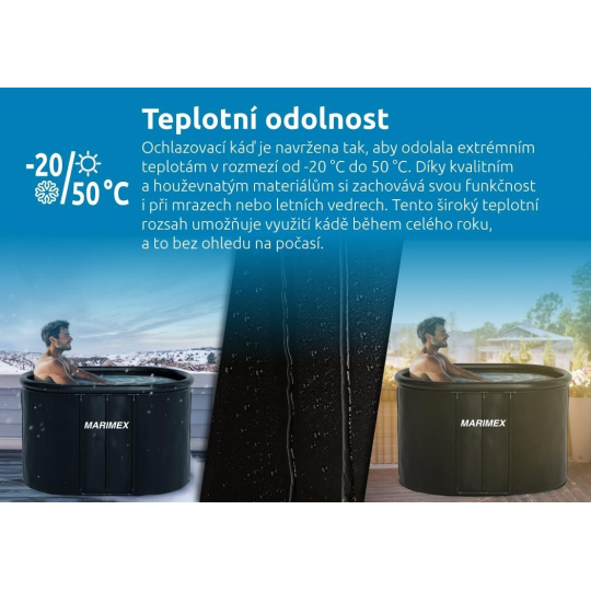 Káď je navržena tak, aby odolala teplotám od -20 °C do 50 °C. Díky tomu je ideální pro využití v jakémkoli počasí a ročním období.