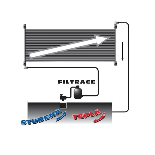 Solární panel Slim 180 pohlcuje tepelnou energii slunečních paprsků a předává ji vodě, která panelem proudí. Chladná voda z bazénu je pomocí bazénové filtrace vháněna do solárního panelu, kde se ohřívá a vrací se zpět do bazénu. Solární panel Slim napojíte na hadice o průměru 32 i 38 mm.