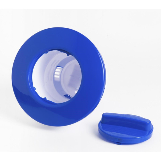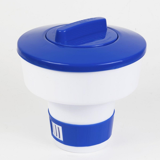 Plovoucí plastový dávkovač s regulační mřížkou pro chlorové tablety.