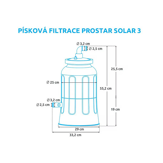 Filtrační systém bazénové filtrace ProStar Solar 3 se skládá z filtrační nádoby o průměru 290 mm, do které se vejde 400 g filtrační náplně Marimex Balls. Filtrace je vybavena skládacím solárním panelem o výkon 80Wp, motorem čerpadla o příkonu 40W. Dále má ve výbavě super tiché čerpadlo (35 dB). Ve výbavě je i transformátor pro možné připojení do zásuvky. Filtrace má klasické připojení na hadice 32 mm a je vhodná pro bazény do 19 m3. Průtok vody je 3,5 m3/hod.