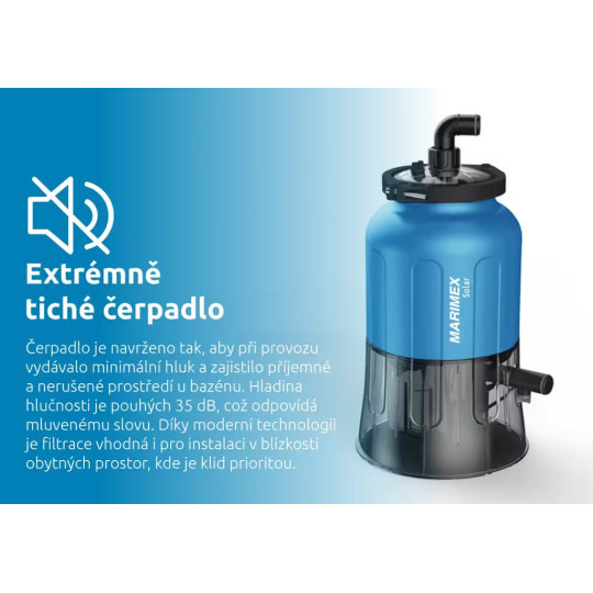 Čerpadlo je navrženo tak, aby při provozu vydávalo minimální hluk a zajistilo příjemné a nerušené prostředí u bazénu. Hladina hlučnosti je pouhých 35 dB, což odpovídá mluvenému slovu. Díky moderní technologii je filtrace vhodná i pro instalaci v blízkosti obytných prostor, kde je klid prioritou.