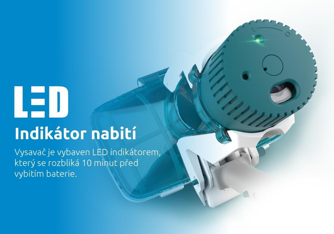 - LED indikátor se rozbliká 10 min. před vybitím baterie